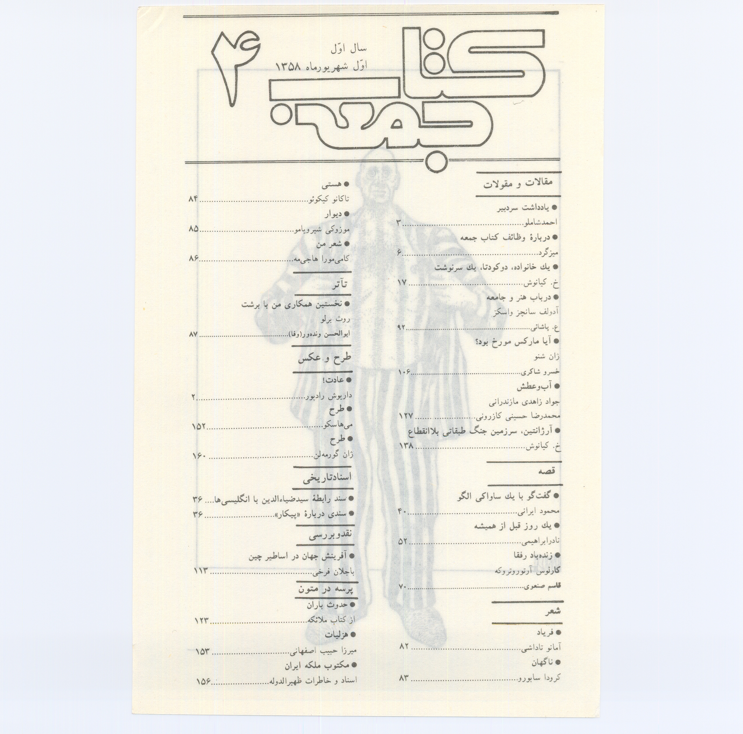 | ۲۳ آوریل ۲۰۱۰، ساعت ۰۹:۱۸ | Jeld-4-03.jpg (پرونده) | ۱۵۰ کیلوبایت | پشت جلد کتاب جمعه سال اول شماره ۴ | ۱ | |