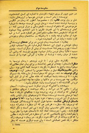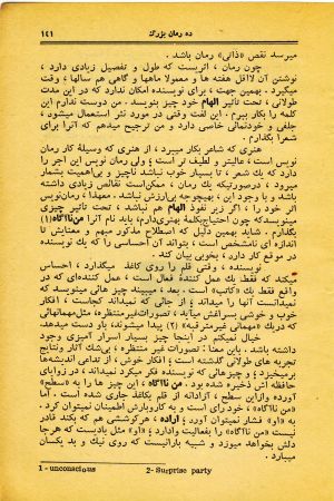 نویسندهٔ باتجربه، برای آنکه «من ناآگاه» را با ریشخند بهکمک خود آورد، شیوههای مختلفی دارد. ولی گاهی «من ناآگاه» سرسختی و لجبازی میکند. آنوقت است که نویسنده «تنها» میماند، و در نوشتهای چون رمان که ناچار یک اثر مطول است، این «تنهائی» کم پیش نمیآید. و نویسنده وقتی «تنها» میماند، فقط میتواند بهسعی و کوشش پیگیر و بهقدرت و توانائی عمومی خود متوسل شود. و اگر بتواند با این وسائل، توجه خوانندهٔ خود را جلب کند، معجزه کرده است.