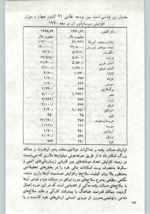 در سال ۷۹-۱۹۷۸ حدود ۴۷۰ میلیارد دلار از طرف ۶۴ کشور جهان برای هزینههای نظامی و جایگزینی و تکمیل سلاحهای جنگی در نظر گرفته شده است. و این بهگونهئی حاکی از تسرّی خوی نظامیگری و مقابله با مسایل و مشکلات از موضع نمایش قدرت میباشد، و بهاعتباری ادامهٔ روندی که از دهه ۱۹۷۰ آغاز گردیده است.