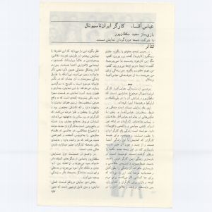این یک نمایش مستند است متکی بر ضبط سخنان عباسآقا و زنش با عکسهائی از خانواده عباسآقا، خانهشان و اسباب خانهشان، کارگردان در ارائه این اسناد، کنشی سیاسی و واکنشی واقعبینانه دارد. خواسته است زندگی یک کارگر ایران را بطور مستند، پروتوتیپ، برای بقیه کارگران که کمابیش با این زندگی آشنا هستند و از چند و چون آن خبر دارند بازسازی کند. در این زمینه چند نکته را درنظر گرفته است، کوشیده است در بازسازی زندگی این کارگر امین باشد، بهمدد ضبطصوت و دوربین عکاسی و بازیسازی ماهرانه، آن زندگی را بطور کامل و همهجانبه عرضه کند. این را میداند که برای چه کسانی کار میکند. برای مردم کوچه و بازار، برای کارگران و کشاورزان، پس باید سطح دریافت و علائق آنان را در نظر بگیرد این را میداند که این قشرها با نمایش بیشتر از طریق تعزیه، نقالی، روحوضی و غالباً روایات کمدی ـ اجتماعی لالهزاری آشنا هستند، پس آغاز بهشکل معمولی همین تأتر، یعنی تأتر عامیانه روی میآورد، بیآنکه با نقل زندگی محرومان ـ آن چنان که در تأتر عامیانه مرسوم است ـ تفریح و سرگرمی بسازد، میخواهد با این نمایش، بیداری و طغیان پدید آورد. نمایش دو قسمت مجزا دارد، یکی پیشپرده کمدی است که در واقع معرفی شخصیتها، ترسیم فضای نمایش را بهعهده دارد ـ که کاشکی مختصر بود ـ کلیاتی را بهطعن و طنز عرضه میکند که کارگران درون سالن را بهقهقهه میاندازد، اشارات مربوط بهوقایع جاری روز است، در واقع نیشی است بهکارگزاران جدید دولت و اوضاع مملکتی. در جائی او نظام حکومتی را بهاتوبوس آشفته و کجراهی تشبیه میکند که دو راننده دارد و بهجای رفتن بهمحله کارگران جلو «بازار» بارش خالی شده است.
