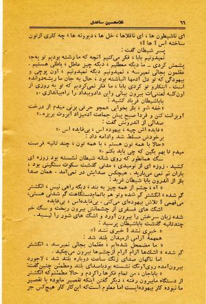 «نبود؟ نبود؟ پیدا نکردین؟ خاک بر سر همهتون. چطوری پیدا نکردین؟ ها؟ ها؟ یااله زود باشین بگین بهبینم چطوری جستین که پیدا نکردین؟»