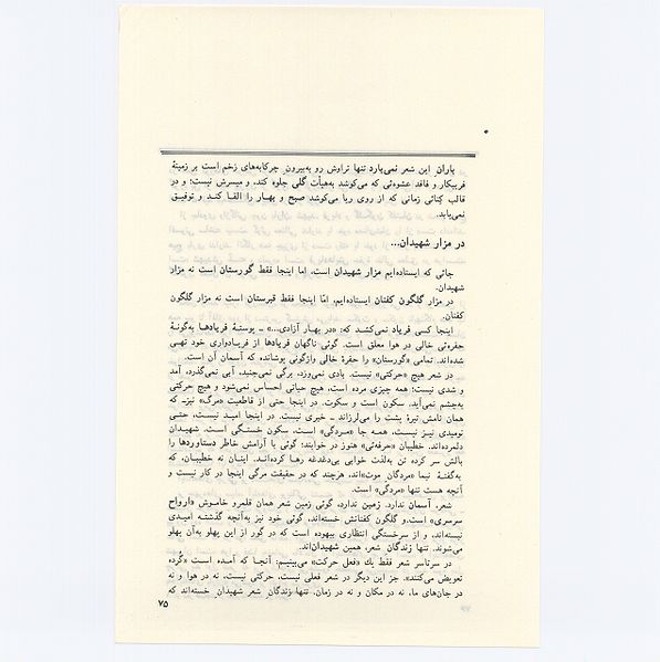 | نسخهٔ کنونی | ۹ آوریل ۲۰۱۰، ساعت ۱۱:۵۰ | ۲٬۵۴۸ در ۲٬۵۵۷ (۲٫۲ مگابایت) | Babak (بحث | مشارکتها) | کتاب جمعه سال اول شماره اول صفحه 75 |