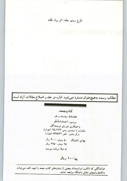 | نسخهٔ کنونی | ۷ مهٔ ۲۰۱۰، ساعت ۱۳:۱۹ | ۱٬۷۴۴ در ۲٬۴۸۰ (۴٫۴۳ مگابایت) | Parastoo (بحث | مشارکتها) | جلد کتاب جمعه سال اول شماره ۱۰ |