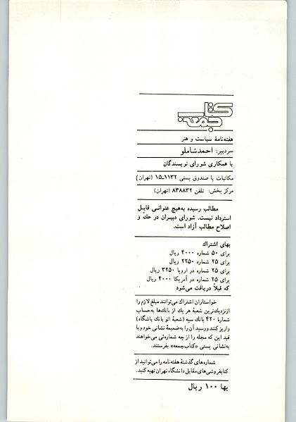 | نسخهٔ کنونی | ۴ سپتامبر ۲۰۱۰، ساعت ۰۳:۲۴ | ۱٬۷۴۴ در ۲٬۴۸۰ (۱٫۷۹ مگابایت) | Parastoo (بحث | مشارکتها) | کتاب جمعه سال اول شماره ۱۴ |