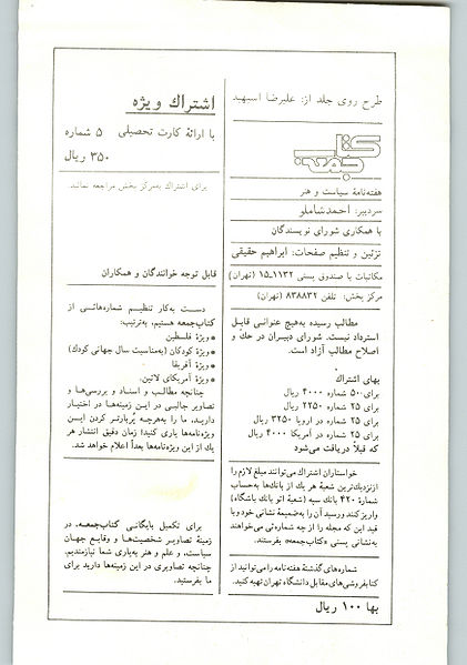نسخهٔ کنونی‏۱۹ سپتامبر ۲۰۱۰، ساعت ۱۲:۲۷تصویر بندانگشتی از نسخهٔ مورخ ‏۱۹ سپتامبر ۲۰۱۰، ساعت ۱۲:۲۷۱٬۷۴۴ در ۲٬۴۸۰ (۱٫۷۹ مگابایت)Parastoo (بحث | مشارکت‌ها)کتاب جمعه سال اول شماره ۲۱ جلد ۲