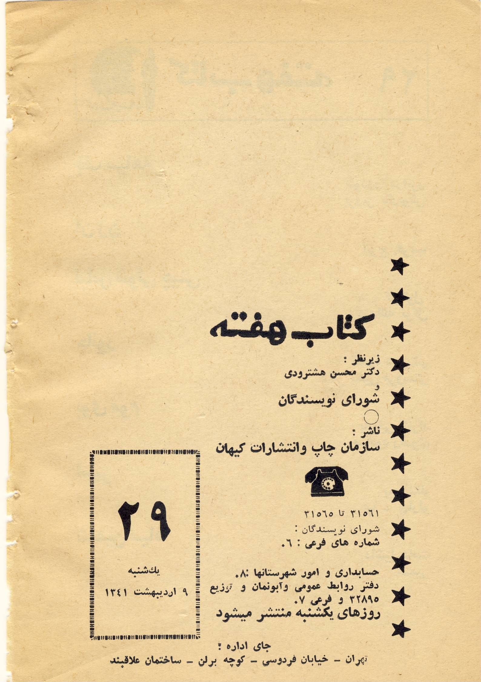کتاب هفته شماره ۲۹ صفحه ۶ (فهرست)