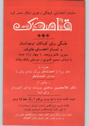 | مرکز پخش: تلفن ۸۳۸۸۳۲ (تهران) |