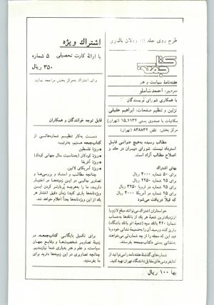 | مرکز پخش: تلفن ۸۳۸۸۳۲ (تهران) |