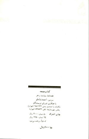 | مرکز پخش: تلفن ۸۳۸۸۳۲ (تهران) |