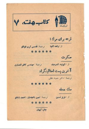 - قرعه برای مرگ! - از واهه کاچا. ترجمهٔ: قدسی کریم قوانلو ... در صفحهٔ ۱۱