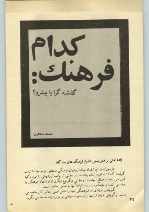بنا بر آنچه گفته شد، آنچه از تکامل آیندهٔ جامعه حکایت می‌کند همین فرهنگ سوم است. و آنچه مربوط است به صورتبندی اجتماعی – اقتصادی موجود، فرهنگ دوم یا فرهنگ سرمایه‌داری وابسته است. اما چگونه است که فرهنگ نخست که نه بر صورتبندی اجتماعی – اقتصادی فعلی جامعه منطبق است، و نه در مسیر تکاملی جامعه قرار دارد، و واپس‌گرائی خصلت عمدهٔ آنست،‌ چنین در جامعه نفوذ کرده و گسترش یافته است؟ در پاسخ به این پرسش باید گفت علاوه بر تأکیدی که این فرهنگ در جریان جنبش انقلابی مردم ایران، بر تضاد خود با فرهنگ سرمایه‌داری وابسته کرده، و از این طریق بخش‌هائی از جامعه و مردم را طرفدار خویش ساخته، برای پذیرش و گسترش آن در مردم و جامعه نیز زمینهٔ مساعدی فراهم بوده است.