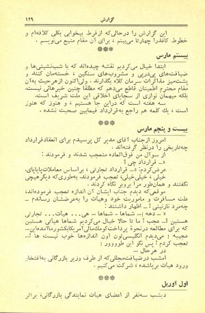 اینجانب از طرف خود و هیأت اقتصادی و دولت متبوعه، استفسار کردم: